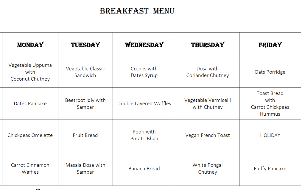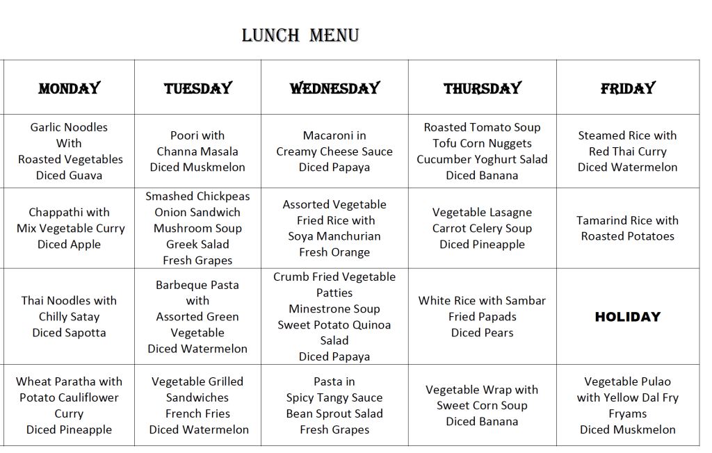 Please find below a sample of our plant-powered menu. In line with our commitment to wellbeing, sustainability and transparency, the freshly prepared daily menu is displayed on the school notice board.